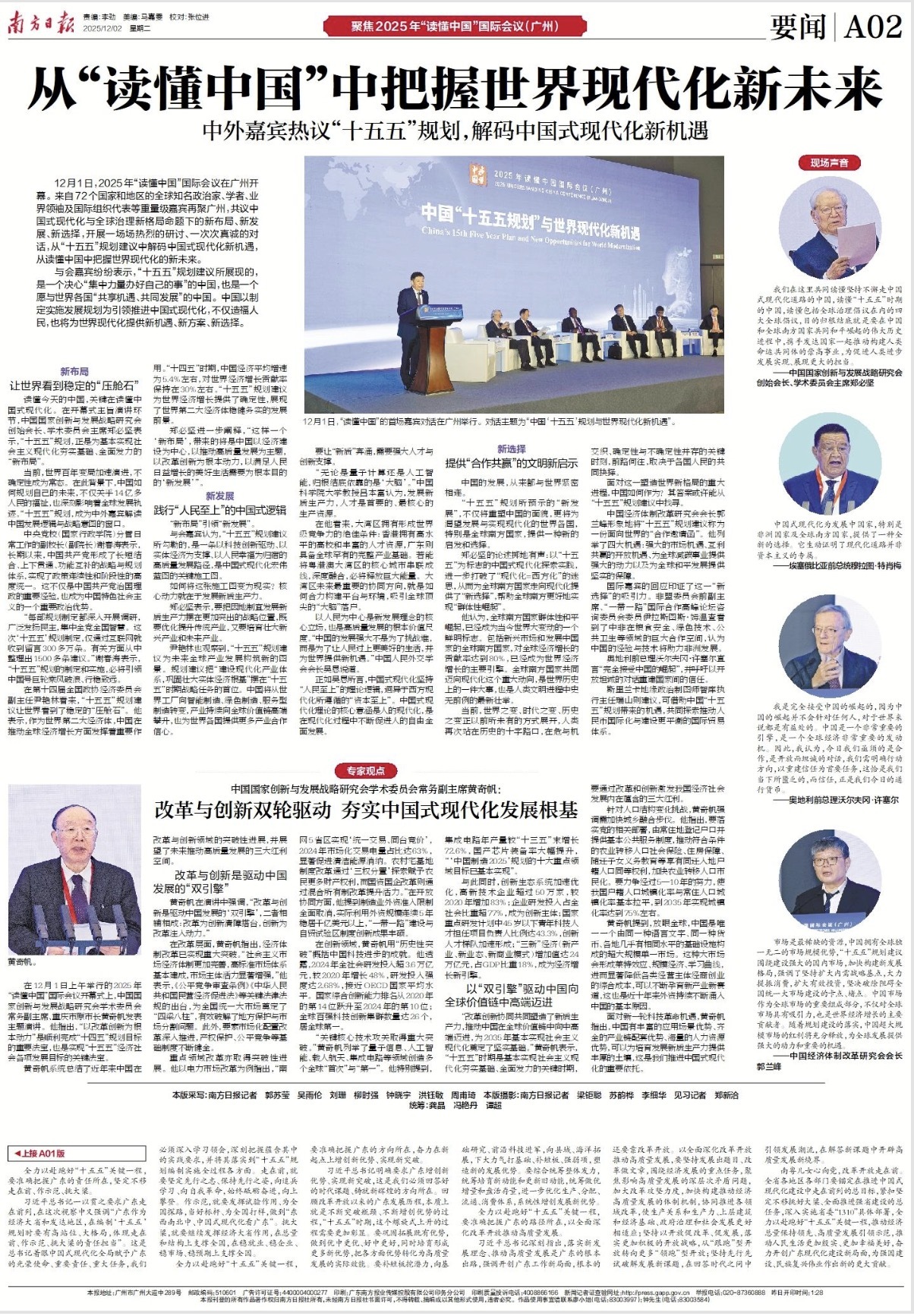 与会嘉宾纷纷表示,“十五五”规划建议所展现的,是一个决心“集中力量办好自己的事”的中国,也是一个愿与世界各国“共享机遇、共同发展”的中国。中国以制定实施发展规划为引领推进中国式现代化,不仅造福人民,也将为世界现代化提供新机遇、新方案、新选择。